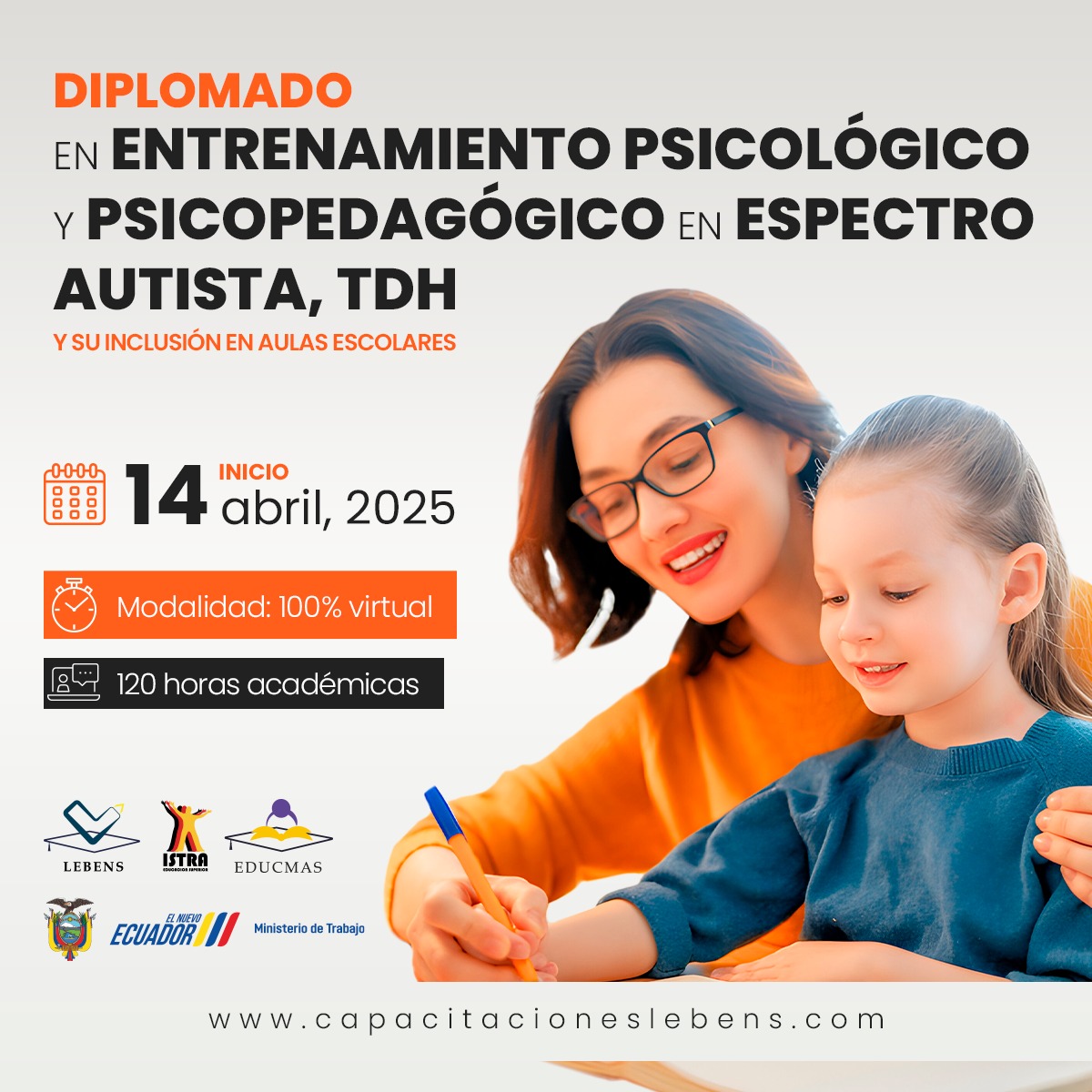DIPLOMADO EN ENTRENAMIENTO PSICOLÓGICO Y PSICOPEDAGÓGICO EN ESPECTRO AUTISTA, TDH Y SU INCLUSIÓN EN AULAS ESCOLARES.